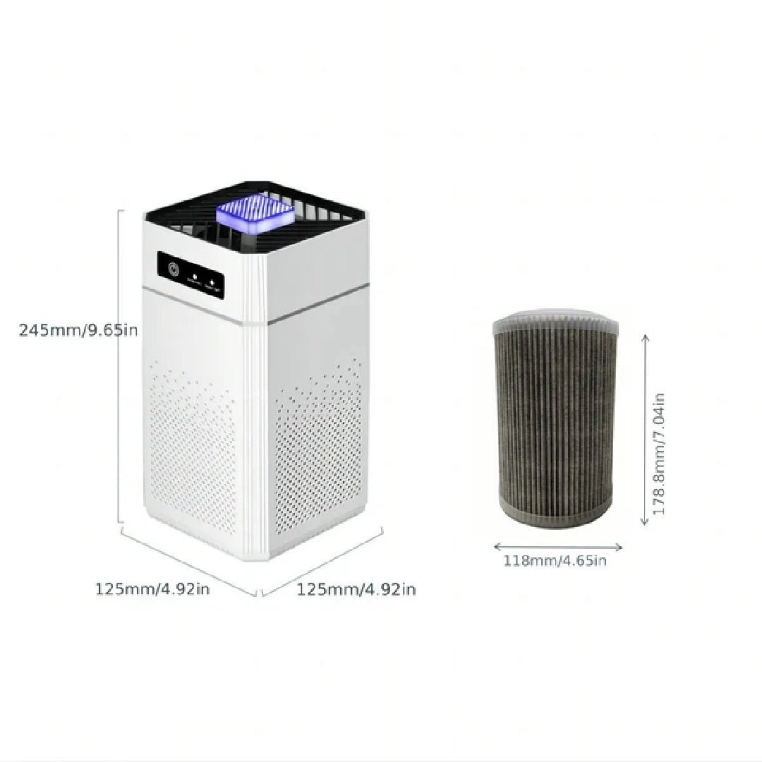 This compact USB-powered air purifier is designed to eliminate common indoor pollutants such as formaldehyde, secondhand smoke, pet dander, and unpleasant odors. Ideal for use at home, in the office, or even on the go, this portable desktop purifier features a high-efficiency filtration system that helps improve air quality in small to medium-sized spaces.