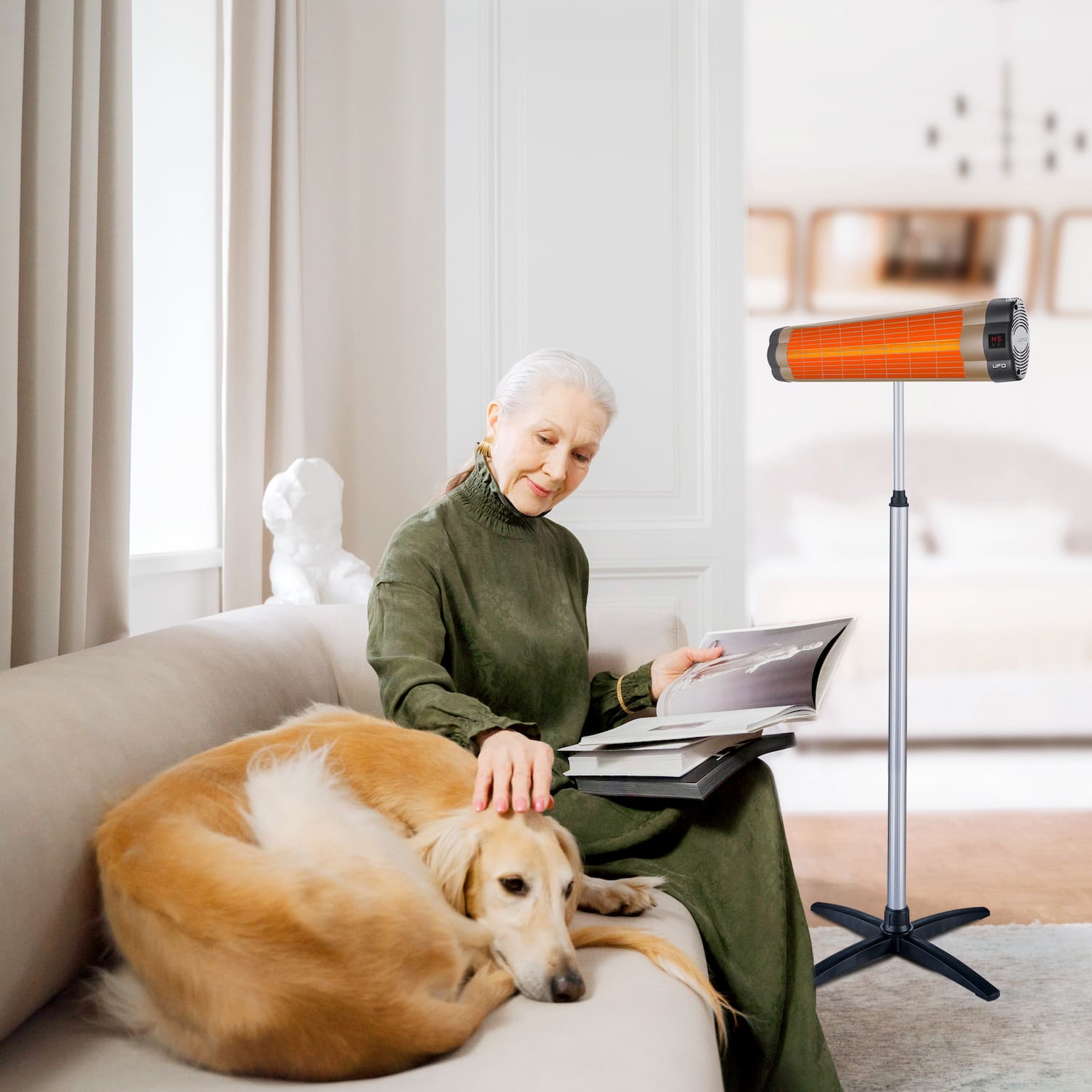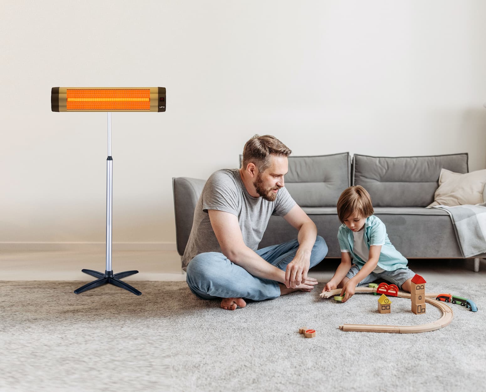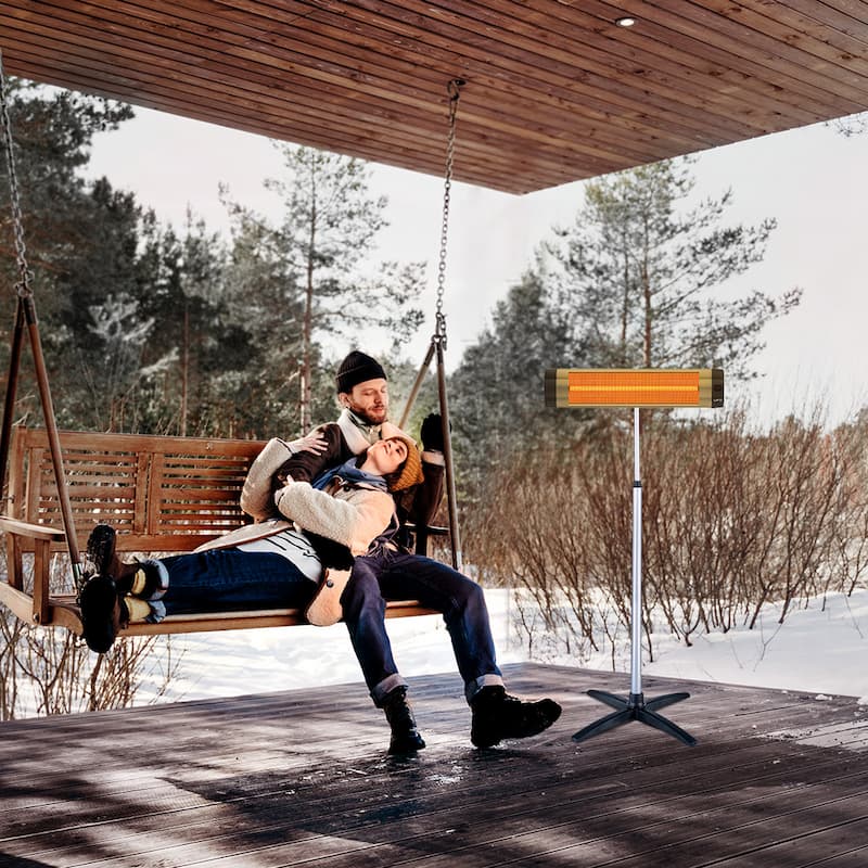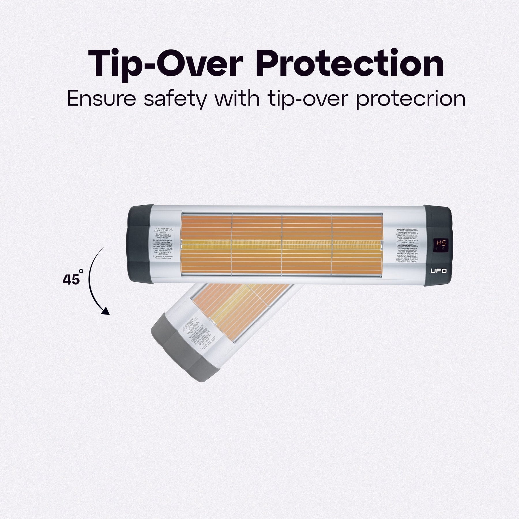 UFO space heaters are safe for use around living beings since they use medium-wave infrared heating technology. When mounted horizontally on a telescopic stand, they can heat up to 160 sq. ft. indoors or 105 sq. ft. outdoors.