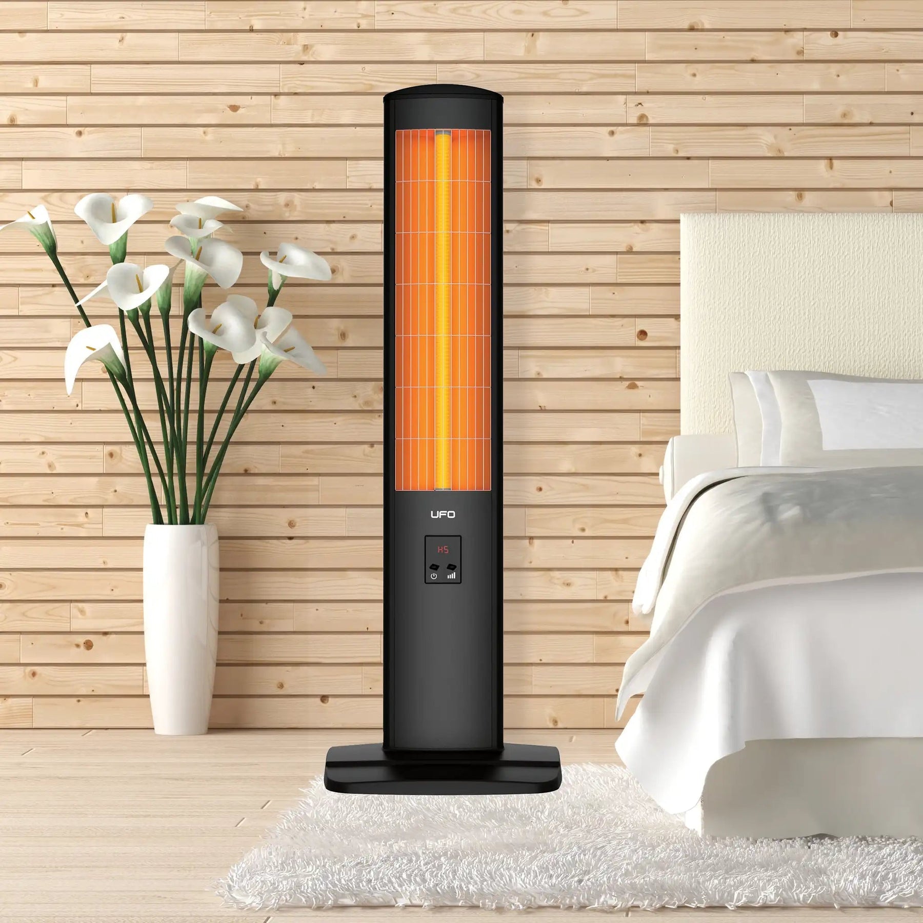 The UFO Micatronic MR-15 vertical tower heater filament lasts three times longer than conventional filaments